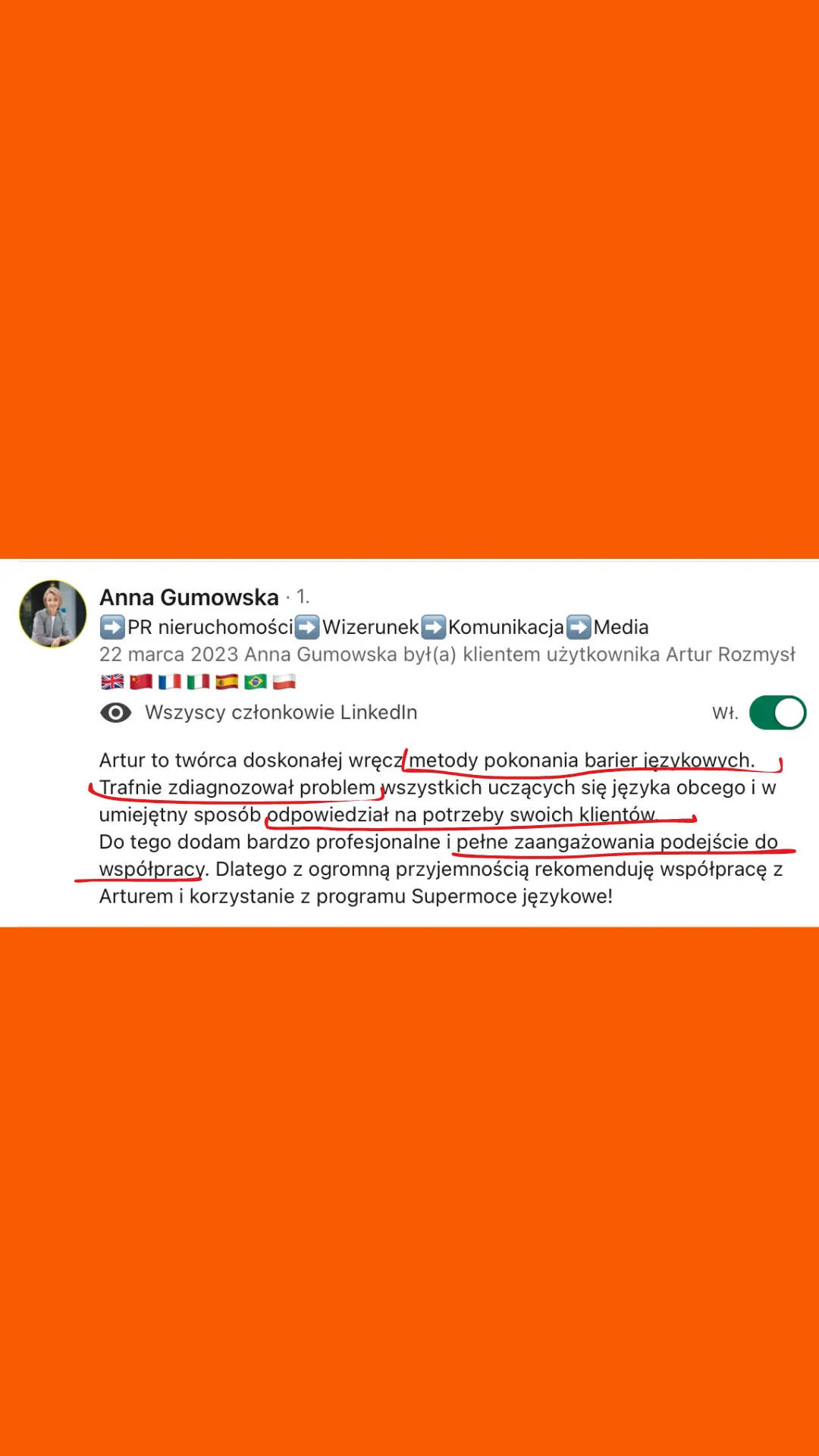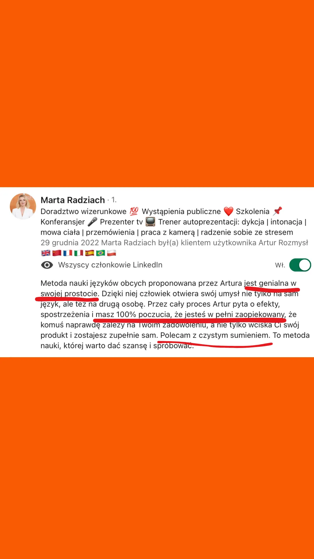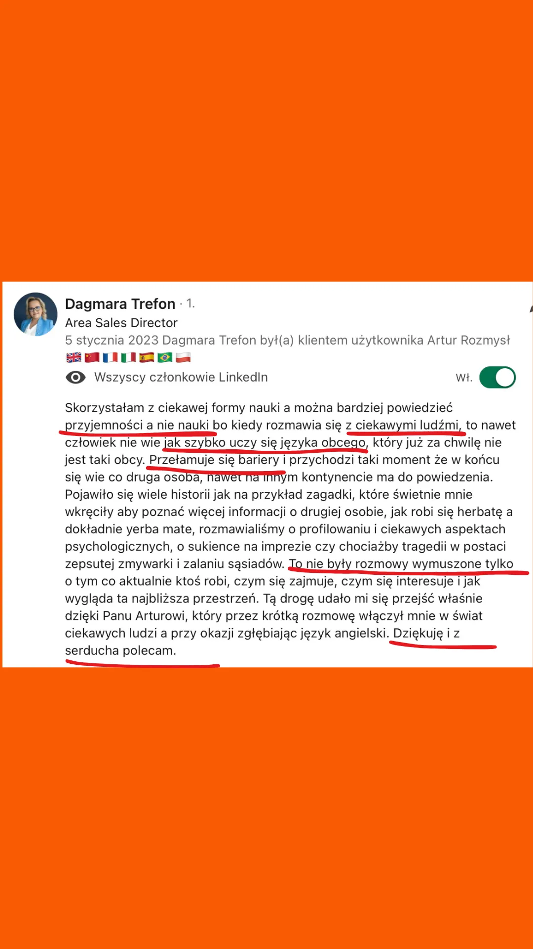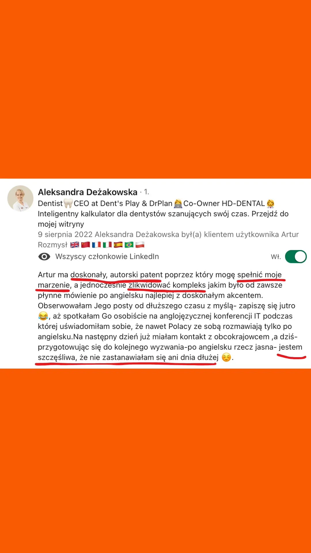 Wszystkie recenzje zamieszczone na tej stronie pochodzą od rzeczywistych klientów. Wyniki przedstawione tutaj nie są standardowe i nie stanowią gwarancji podobnych rezultatów. Indywidualne osiągnięcia mogą się różnić w zależności od Twoich zdolności, doświadczenia, zaangażowania oraz nieprzewidzianych czynników. Firma nie przeprowadziła jeszcze analiz dotyczących wyników swoich typowych klientów, dlatego Twoje rezultaty mogą być odmienne.